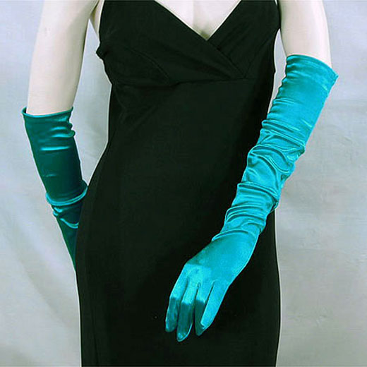 Above The Elbow Satin Stretch Gloves Long satin stretch elbow length gloves. With 10% lycra they fit glove sizes 5-9. These gloves are popular for all evening events. Their button length is 12BL which is most appropriate with a long sleeveless or short sleeve dress. They work well for bridal parties, formal evening events, dinner dances, and proms. Glove size is measured in inches around the hand inside above the thumb and under the fingers. Item G107TQ Price $7.95 Measurements: length 19-20" Color: turquoise, Hue: turquoise ![]() |