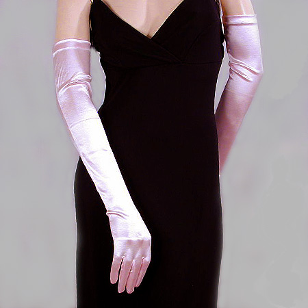 Long Satin Stretch Opera Gloves For Proms & Formal Events, Over 40 Colors Long satin opera gloves in over 40 colors. These evening gloves are 22 to 23 inches in length or 16BL and fit sizes 5-9. They are the most formal length and have a fiber content of 90% nylon or polyester with 10% lycra or spandex for great stretch. These beautiful opera gloves are the most popular choice for bridal parties and are fabulous for weddings, formal evening events, dinner dances, and proms. They work best with strapless or spaghetti strap dresses. Item G163LP Price $7.95 Measurements: length 22-23" Color: light pink, Hue: barely pink ![]() |