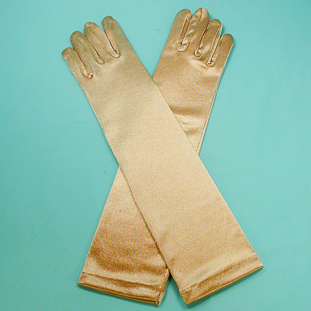 Long Satin Stretch Gloves For Children, Ages 3-6 Long satin stretch gloves for children ages 3-6. These gloves are made from a quality stretch fabric to fit a range of sizes. Item G213GD Price $9.95 Measurements: length 10.75-12" Color: gold, Hue: Antique Gold ![]() |