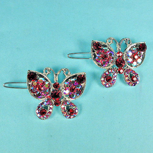 Set Of Two Butterfly Crystal Rhinestone Barrettes Set of two fabulous butterfly barrettes. These barrettes are fashioned with crystal rhinestones and set in a filigree butterfly setting. Item H664SIRD Price $22.95 Measurements: width 1-3/8", height 1-1/8" Color: red, Hue: cherry ![]() |